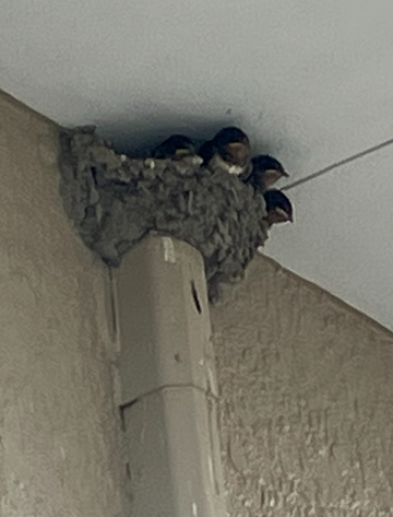 教会の軒下で2年ぶりにツバメが子育てをしていました。